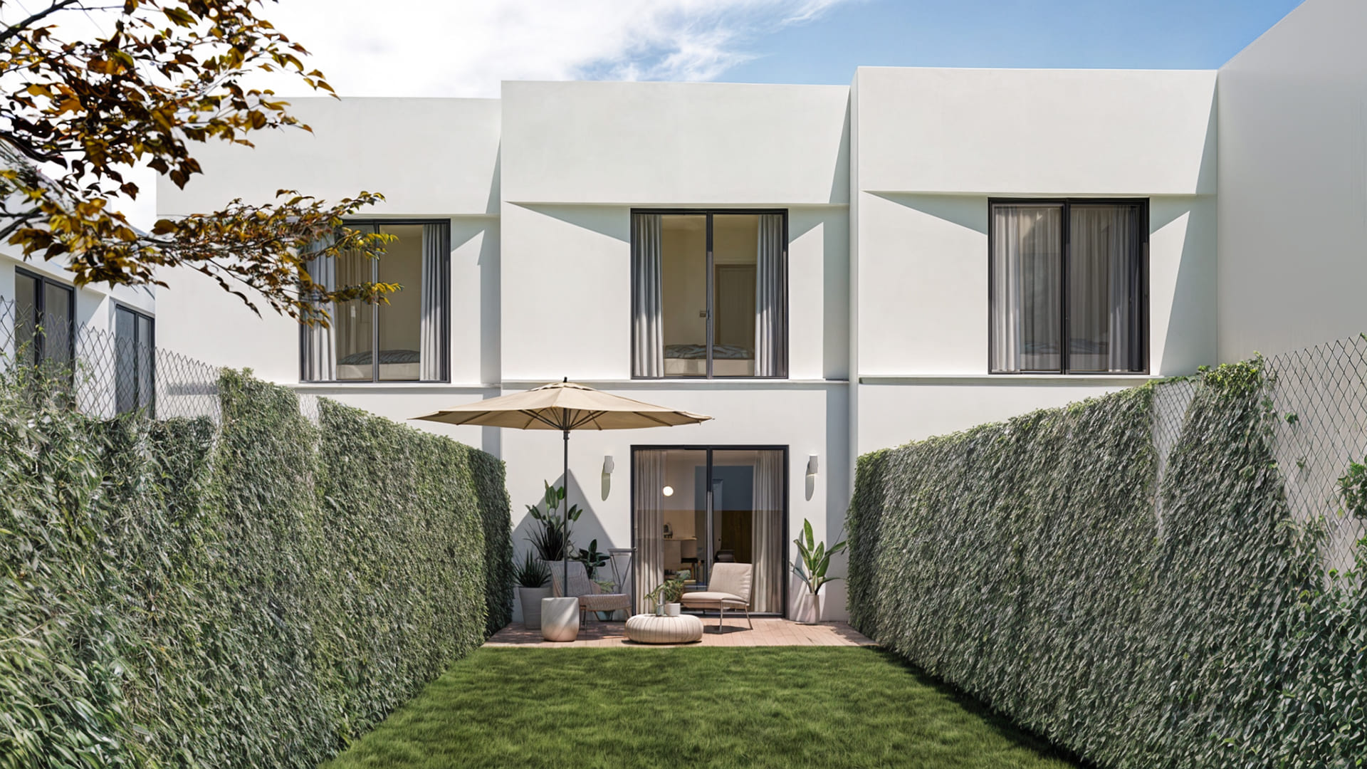 • Según la tipología que elijas, podrás disfrutar de una terraza solada o la misma terraza más jardín privado, perfecta para desconectar al aire libre y disfrutar de tu propio espacio.
